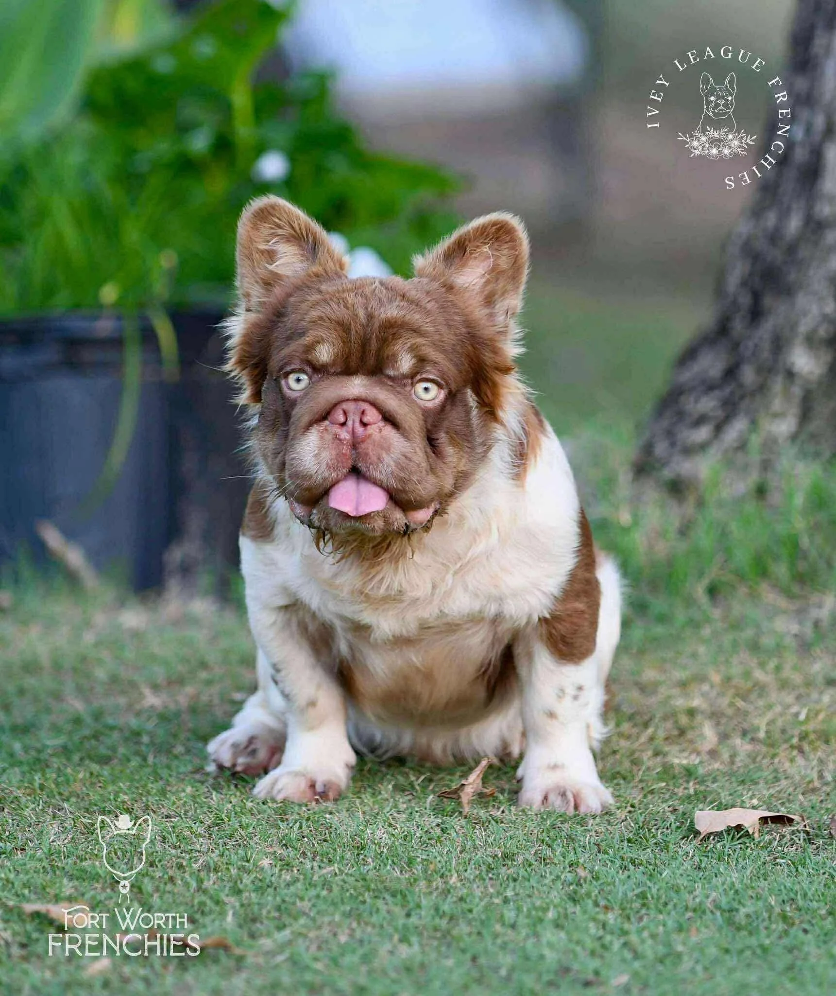 Kodiakatat bb coco Dd EmEm kyky l4l4 new shade rojo and tan fluffy carrying blue no cream Co owned with Fort Worth FrenchiesStud Fee: $2500 Mr. Peabodyatat Bb nco dd Eme nn kyky blue and tan carrying cocoa and testable chocolateStud Fee: $2000 limited time Baxterata bb nco dd Eme ns kyky l4 isabella and tan big rope carrying cocoa, pied and fluffyStud Fee: $1500 paid in full or $2000 with a $500 deposit Bob Rossatat bb coco Dd EmE nm kyky l1l1new shade rojo and tan fluffy merle carrying blue no cream one maskCo owned with Fort Worth FrenchiesStud Fee: $2500 Gooseatat bb coco DD EmE ss kyky l4l4 rojo and tan fluffy pied big rope no blue no cream Co owned with Fort Worth FrenchiesStud Fee: $2500 Kevinatat bb coco Dd Eme nm kyky l4 new shade rojo and tan merle carrying blue, fluffy & creamStud Fee: $2000 General Shermanatat Bb coco dd EmE ns kyky lilac and tan carrying pied and testable chocolate no creamStud Fee: $1500 PAID IN FULL OR $2500